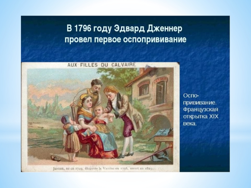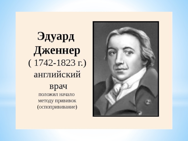 Слайд 46Только в 1796 г. Дженер открыл метод лечения оспы. Он это