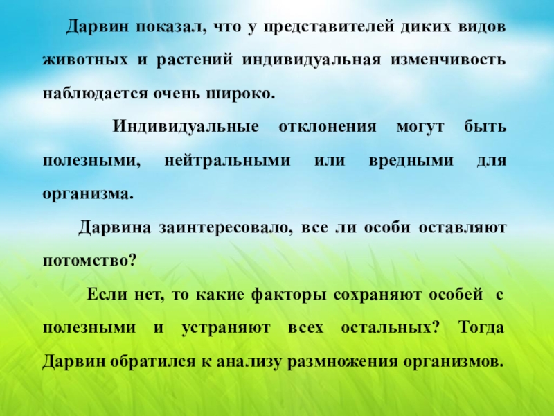Если нет, то какие факторы сохраняют особей с полезными и устраняют всех остальных? Тогда Дарвин обратился к анализу размножения организмов.