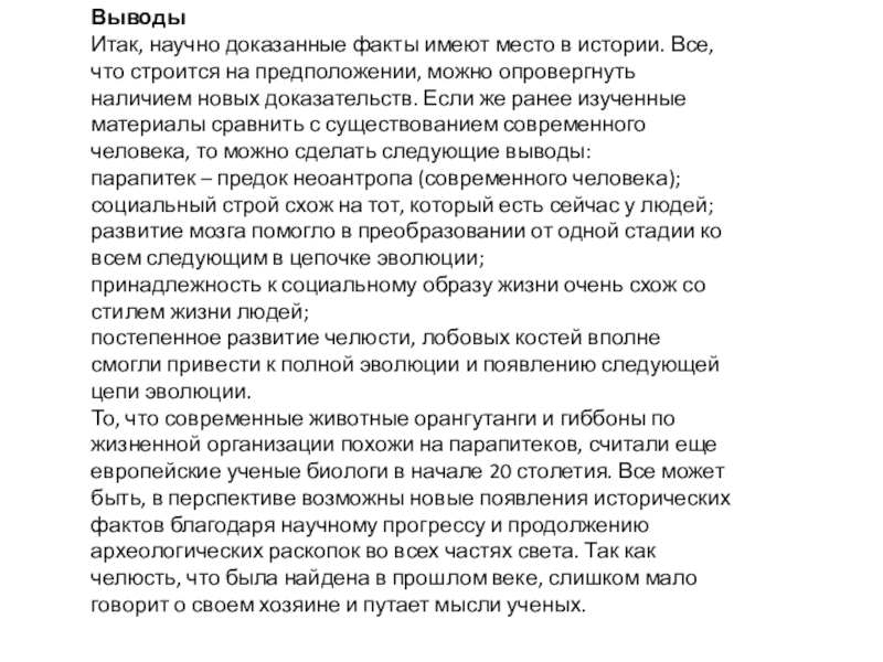 ВыводыИтак, научно доказанные факты имеют место в истории. Все, что строится на предположении, можно опровергнуть наличием новых