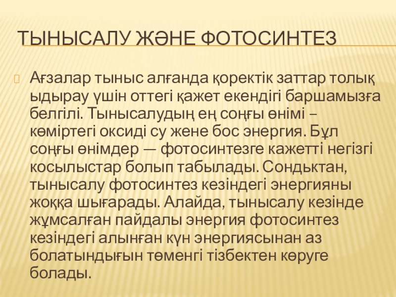 Слайд 5ТЫНЫСАЛУ ЖӘНЕ ФОТОСИНТЕЗ
