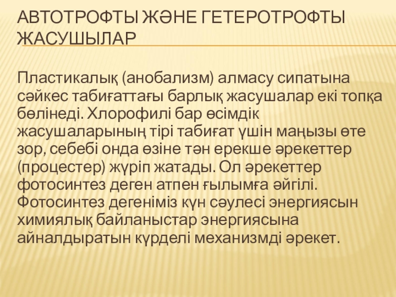Слайд 4АВТОТРОФТЫ ЖӘНЕ ГЕТЕРОТРОФТЫ ЖАСУШЫЛАР
