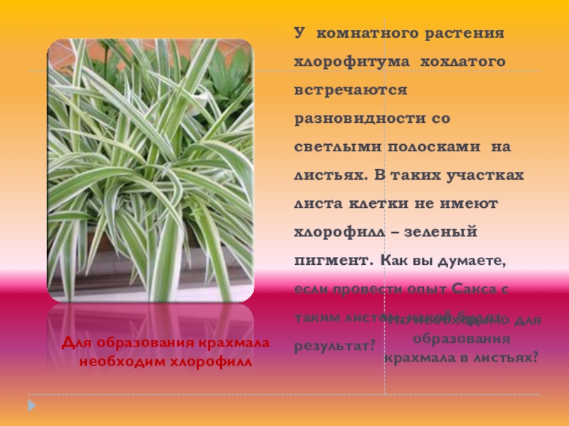 Для образования крахмала необходим хлорофилл
