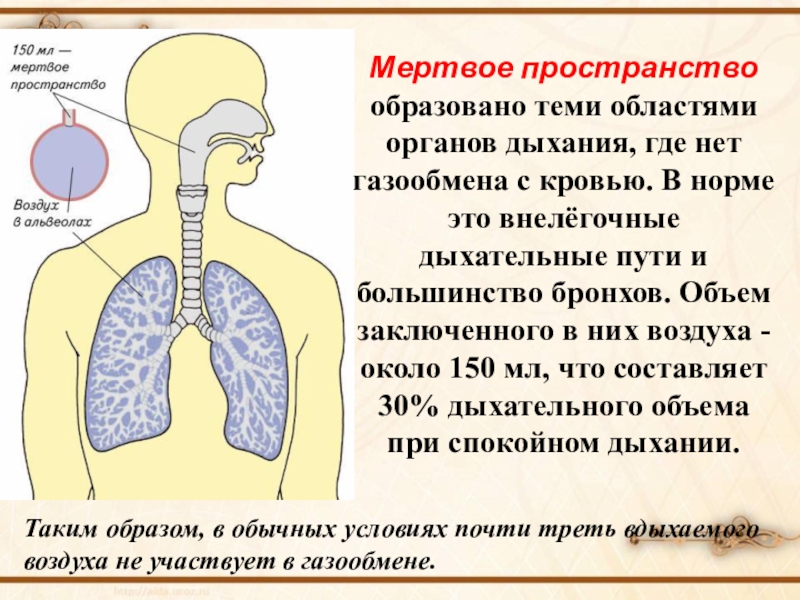 Таким образом, в обычных условиях почти треть вдыхаемого воздуха не участвует в газообмене.
