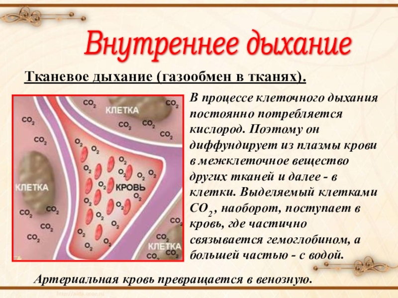 3.Кислород и углекислый газ движутся из области меньшей их концентрации в область большей концентрации.
