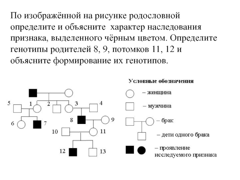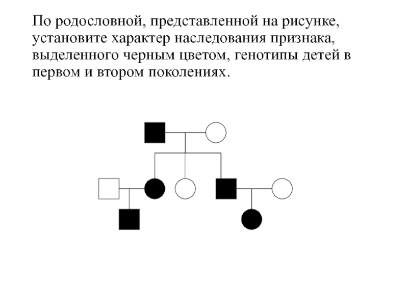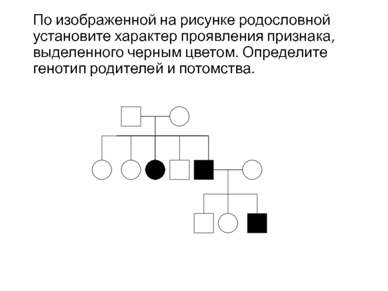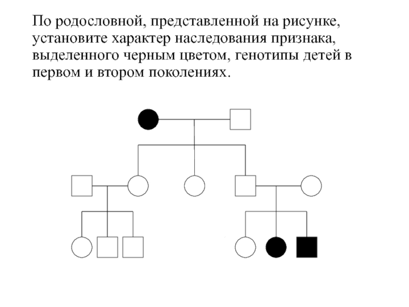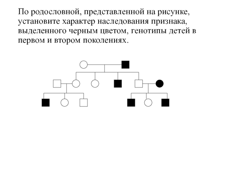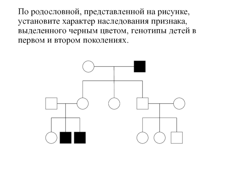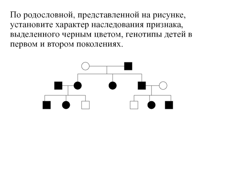 Слайд 28По родословной, представленной на рисунке, установите характер наследования признака, выделенного черным