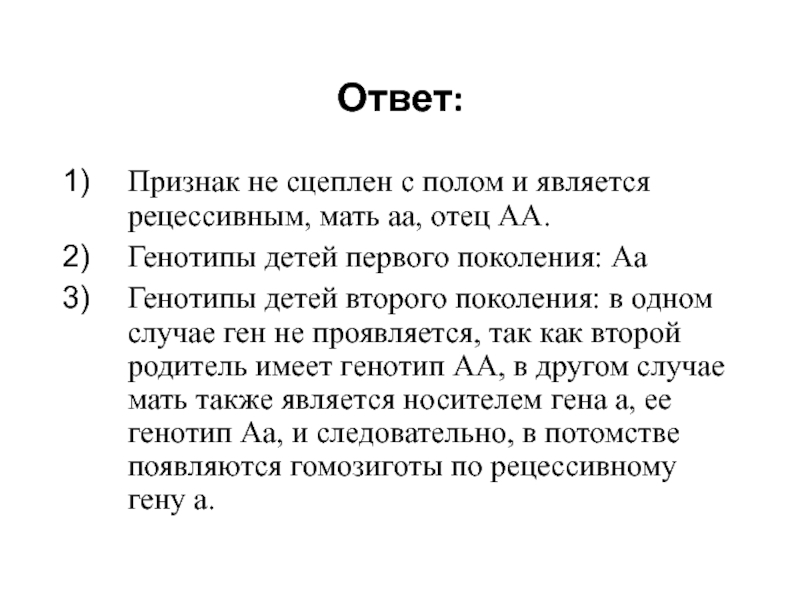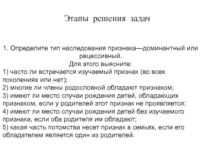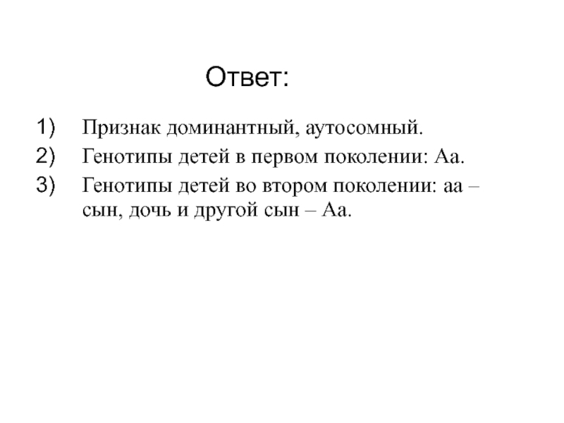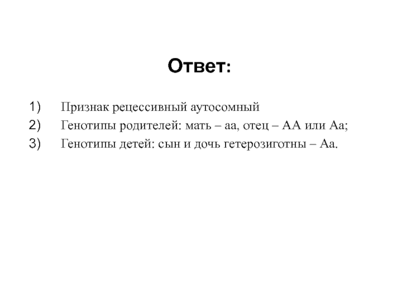 Слайд 131. Определите тип наследования признака—доминантный или рецессивный.