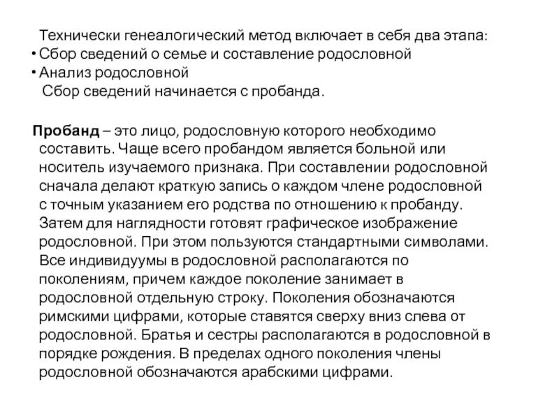 Слайд 3 Технически генеалогический метод включает в себя два этапа:
