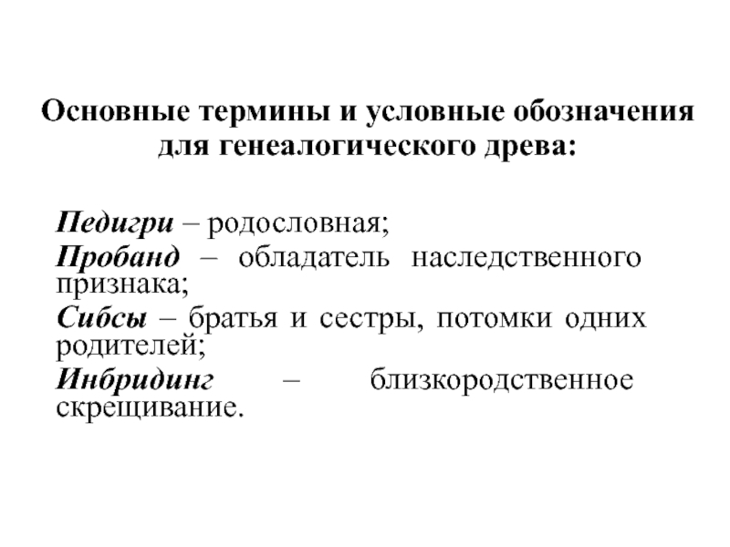 Слайд 4Основные термины и условные обозначения для генеалогического древа: