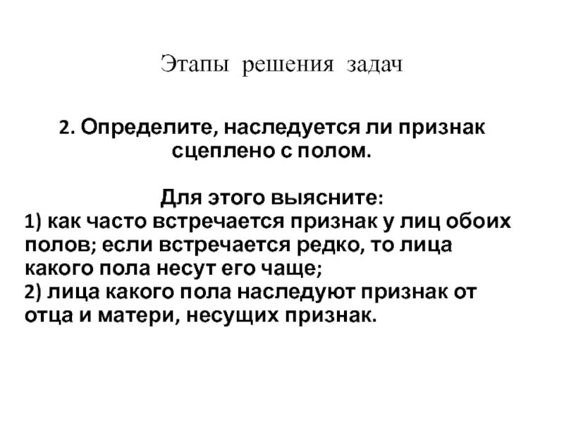 1) как часто встречается признак у лиц обоих полов; если встречается редко, то лица какого пола несут его чаще;