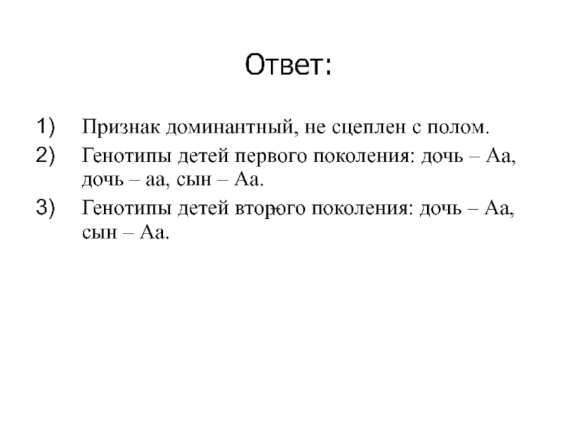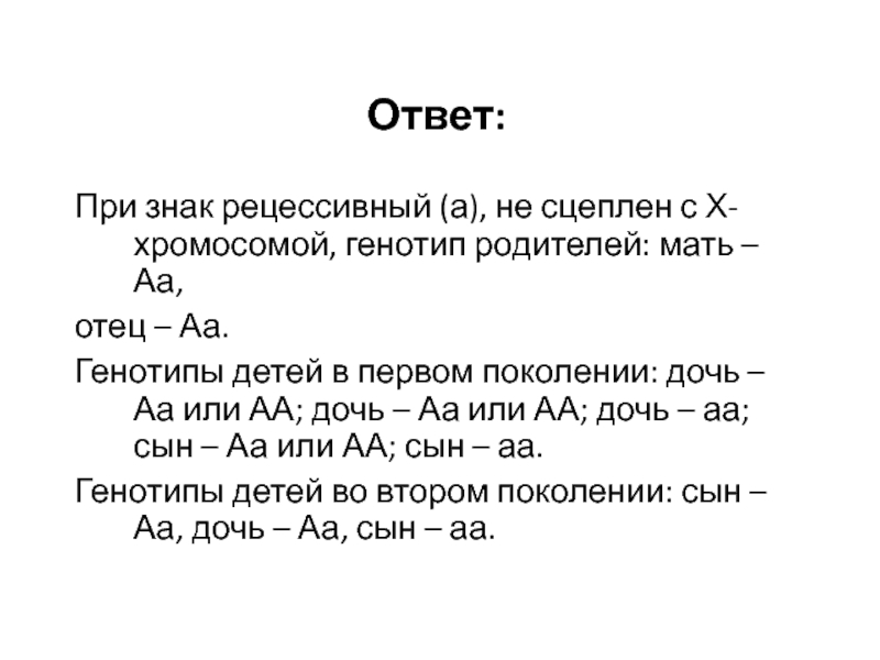 Генотипы детей во втором поколении: сын – Аа, дочь – Аа, сын – аа.