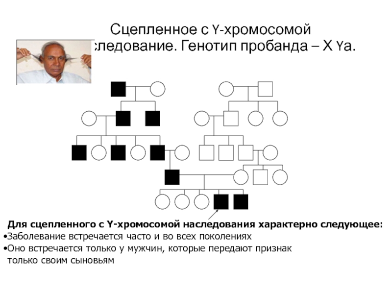 Слайд 12Сцепленное с Y-хромосомой наследование. Генотип пробанда – Х Yа.