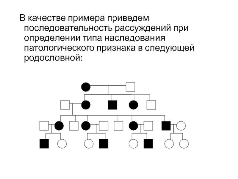 Слайд 16В качестве примера приведем последовательность рассуждений при определении типа наследования патологического