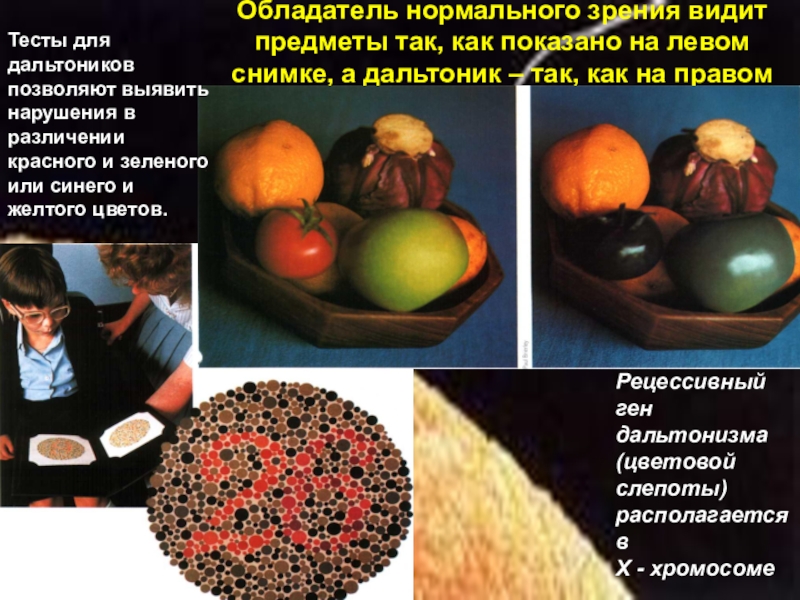 Тесты для дальтоников позволяют выявить нарушения в различении красного и зеленого или синего и желтого цветов.