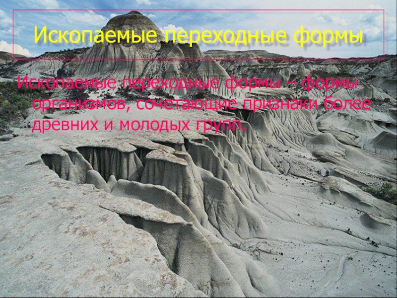 Ископаемые переходные формыИскопаемые переходные формы – формы организмов, сочетающие признаки более древних и молодых групп.