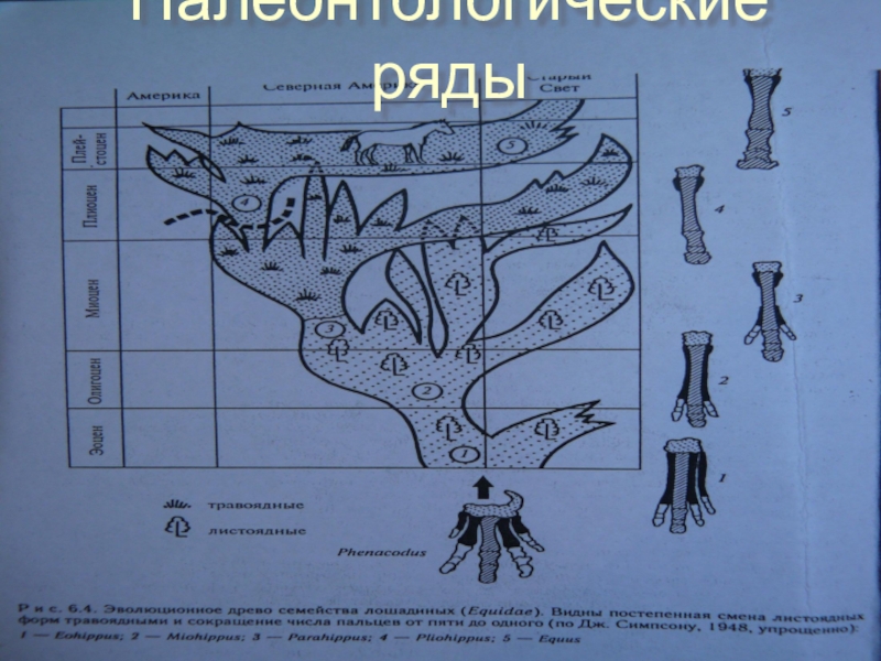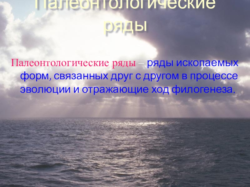 Палеонтологические ряды Палеонтологические ряды – ряды ископаемых форм, связанных друг с другом в процессе эволюции и отражающие