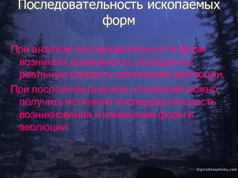 Последовательность ископаемых форм При анализе последовательности форм возникает возможность определить реальную скорость протекания эволюции.При послойном анализе отложений