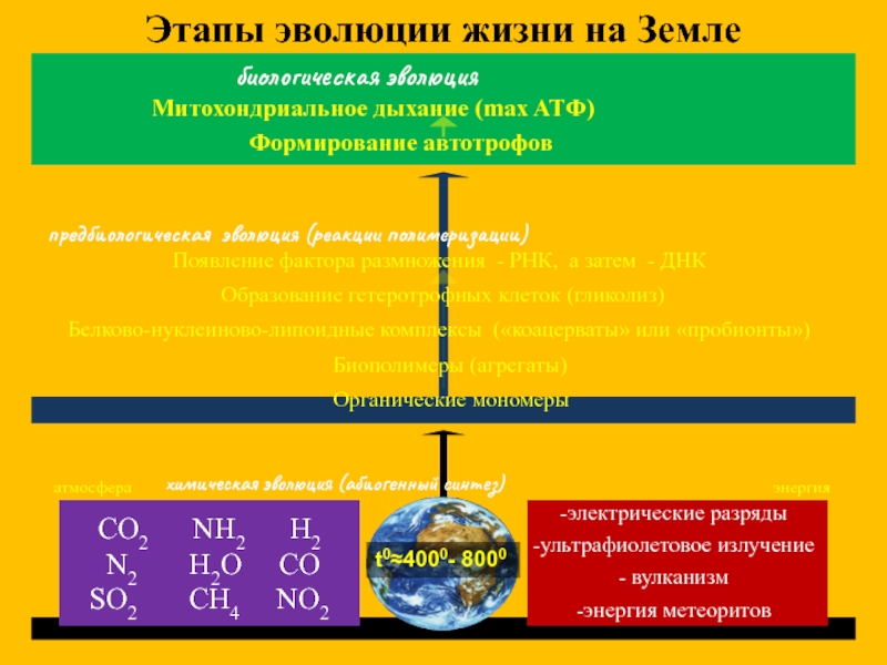 Стенли Миллер (1953г.) смоделировал условия, предположительно существовавшие на первобытной Земле. Получил ряд органических веществ.