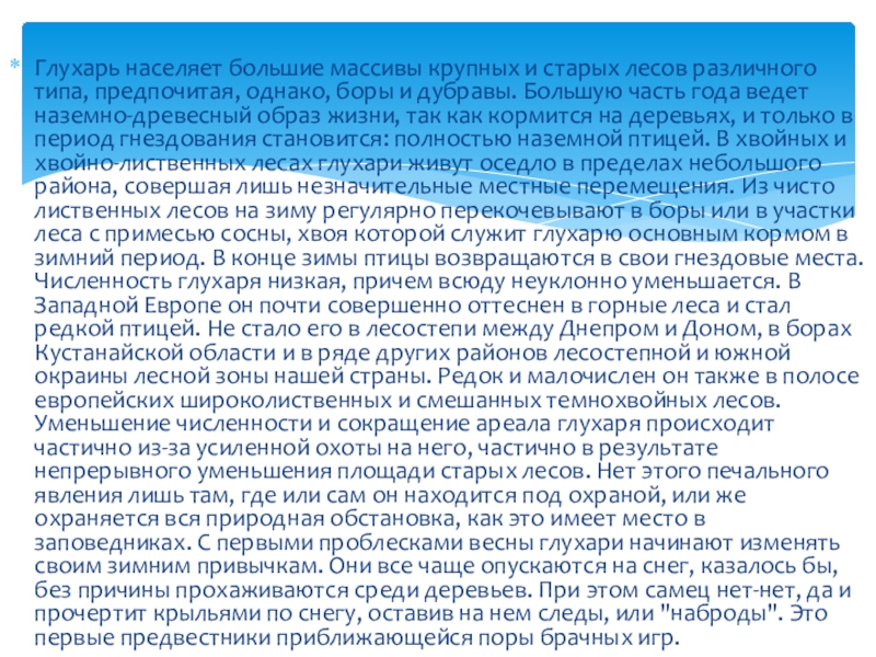 Слайд 4Глухарь населяет большие массивы крупных и старых лесов различного типа, предпочитая,