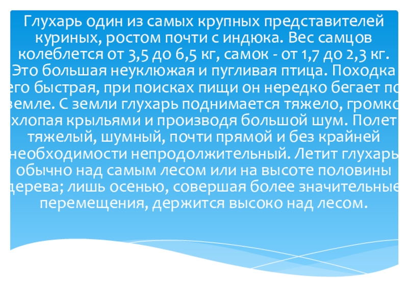 Глухарь один из самых крупных представителей куриных, ростом почти с индюка.