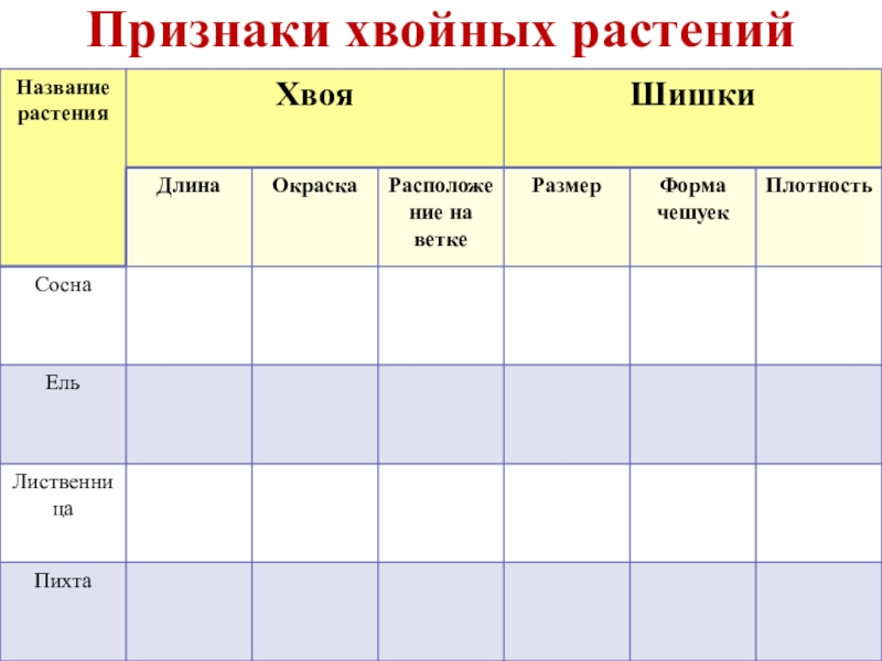 Признаки хвойных растений