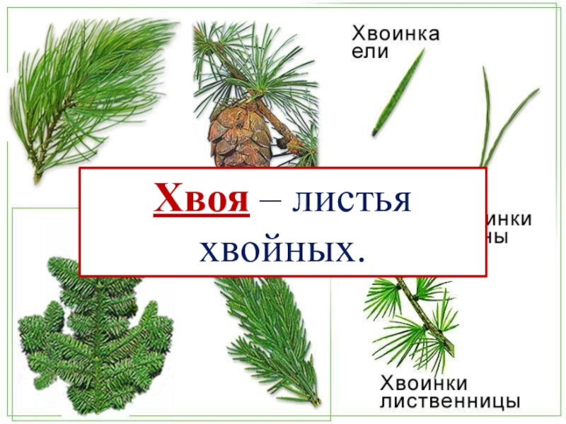 Слайд 7Хвоя – листья хвойных.