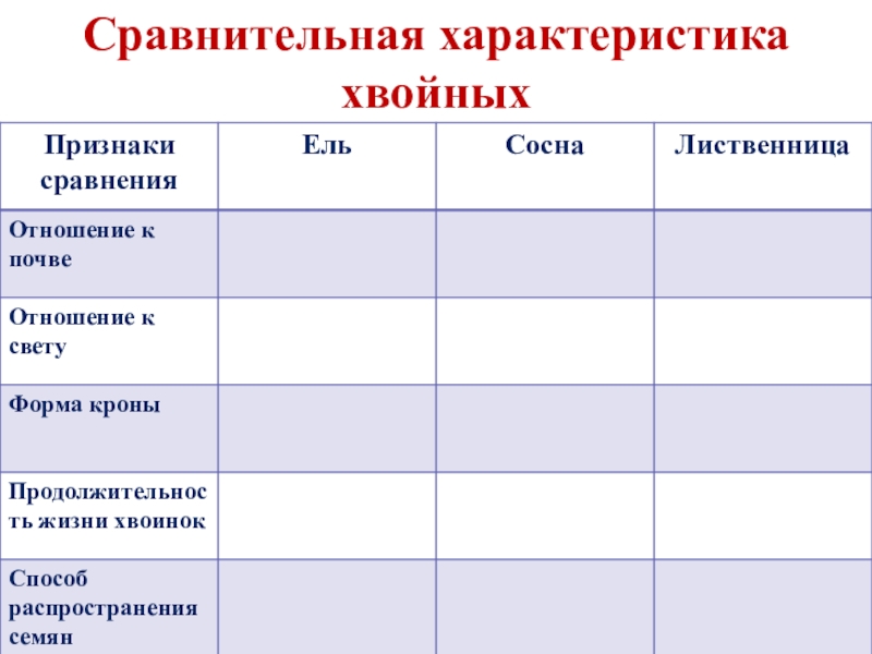 Сравнительная характеристика хвойных