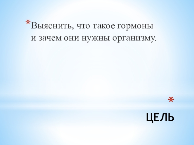 ЦЕЛЬВыяснить, что такое гормоны и зачем они нужны организму.