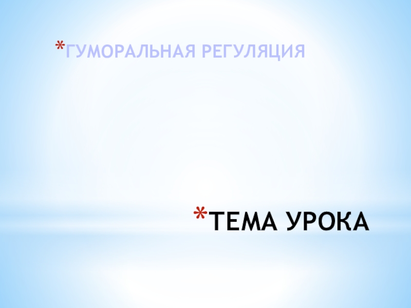 ТЕМА УРОКАГУМОРАЛЬНАЯ РЕГУЛЯЦИЯ