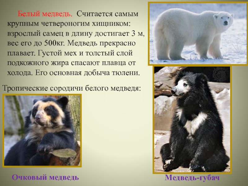 Тропические сородичи белого медведя: