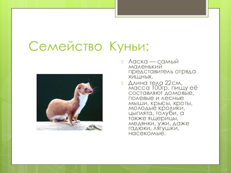 масса 100гр. пищу её составляют домовые, полевые и лесные мыши, крысы, кроты, молодые кролики, цыплята, голуби, а также ящерицы, медянки, ужи, даже гадюки, лягушки, насекомые.