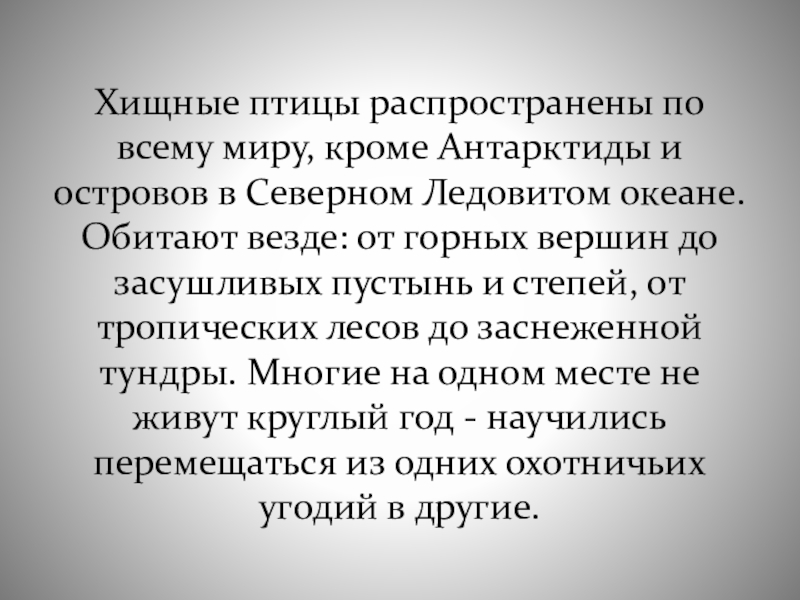 Слайд 5Хищные птицы распространены по всему миру, кроме Антарктиды и островов в
