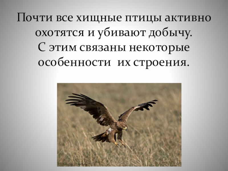 Слайд 6Почти все хищные птицы активно охотятся и убивают добычу.