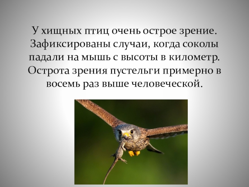 Острота зрения пустельги примерно в восемь раз выше человеческой.