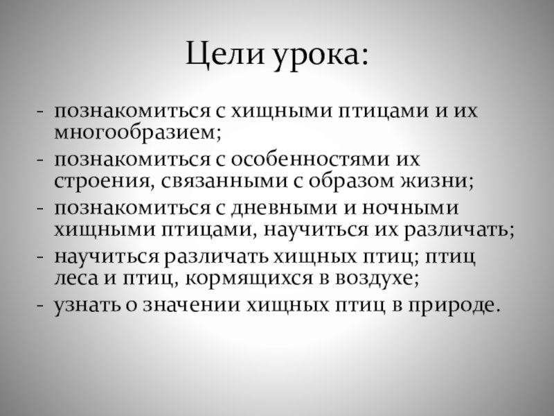 познакомиться с дневными и ночными хищными птицами, научиться их различать;