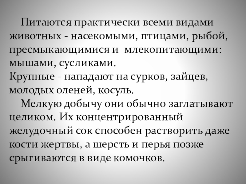 Слайд 12 Питаются практически всеми видами животных - насекомыми, птицами, рыбой,