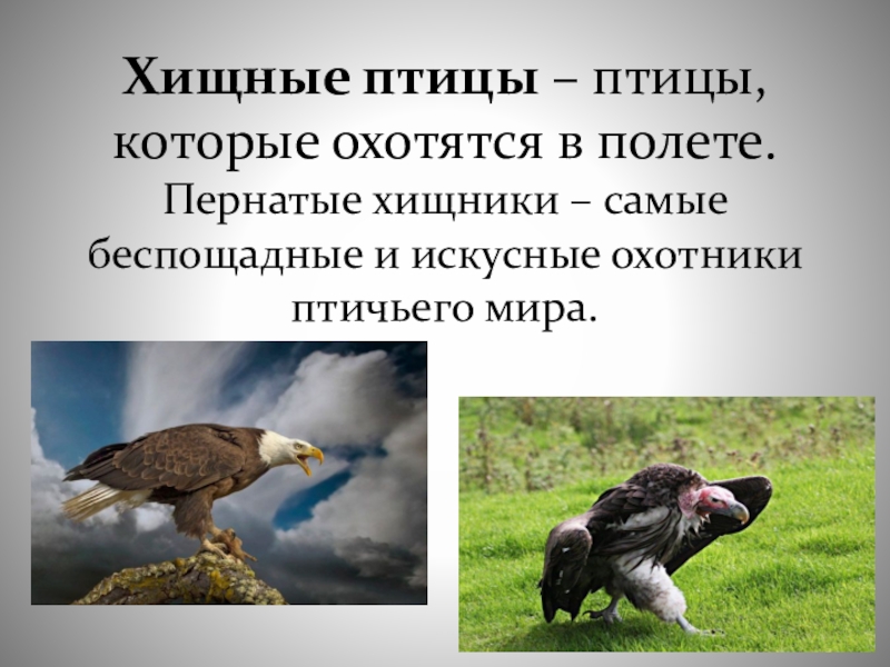 Слайд 3Хищные птицы – птицы, которые охотятся в полете.