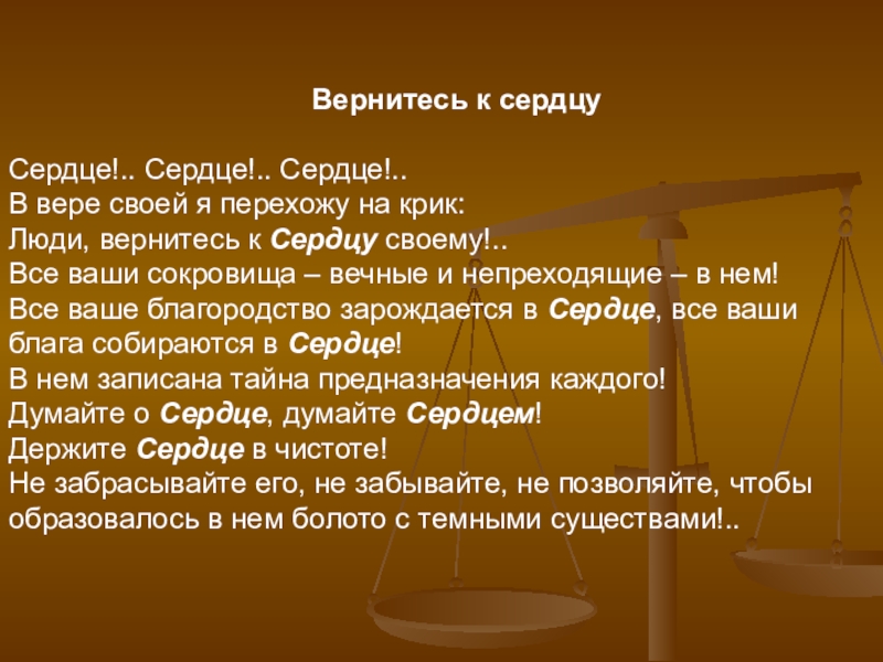 СЕРДЦЕ – символ средоточия чувств, свыше