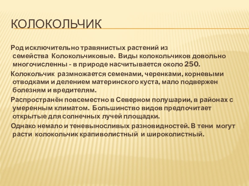 Род исключительно травянистых растений из семейства Колокольчиковые. Виды колокольчиков довольно многочисленны