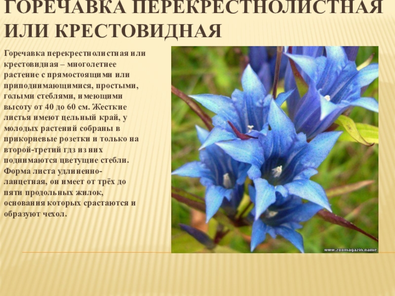 Слайд 2Горечавка перекрестнолистная или крестовидная