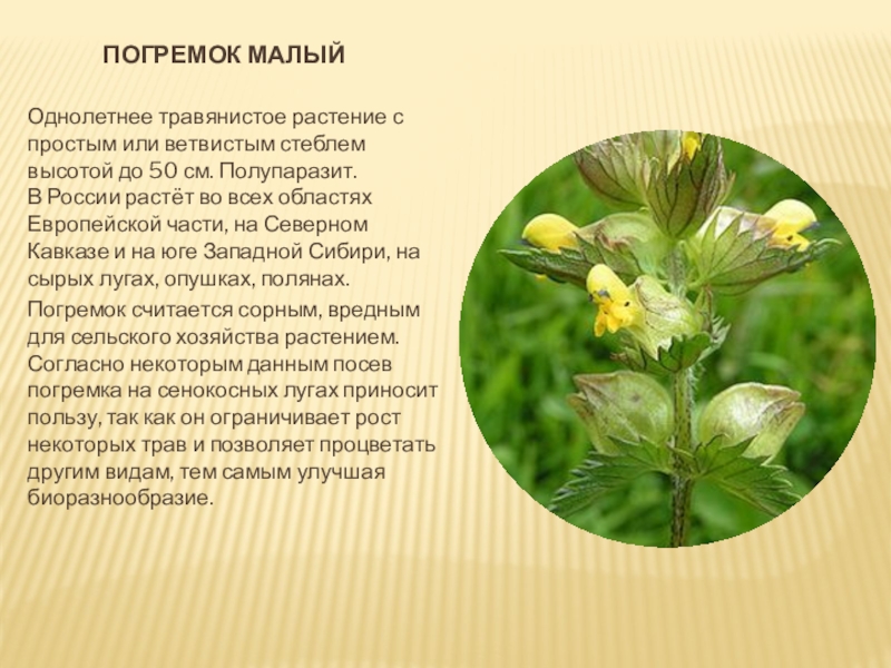 Погремок считается сорным, вредным для сельского хозяйства растением. Согласно некоторым данным посев погремка на сенокосных лугах приносит пользу, так как он ограничивает рост некоторых трав и позволяет процветать другим видам, тем самым улучшая биоразнообразие.