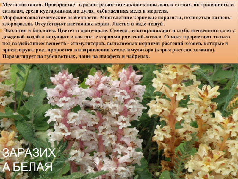 Морфологоанатомические особенности. Многолетние корневые паразиты, полностью лишены хлорофилла. Отсутствуют настоящие корни. Листья в виде чешуй.