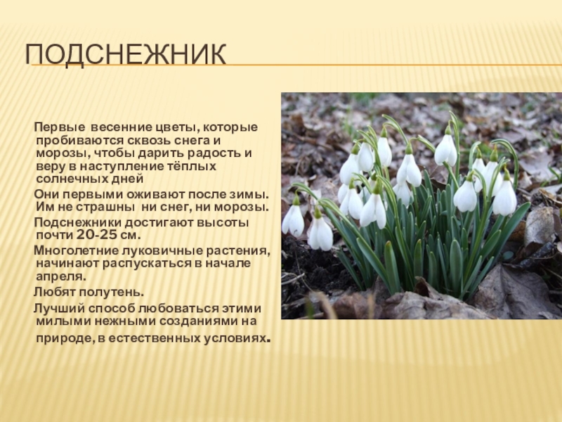 Первые весенние цветы, которые пробиваются сквозь снега и морозы, чтобы дарить