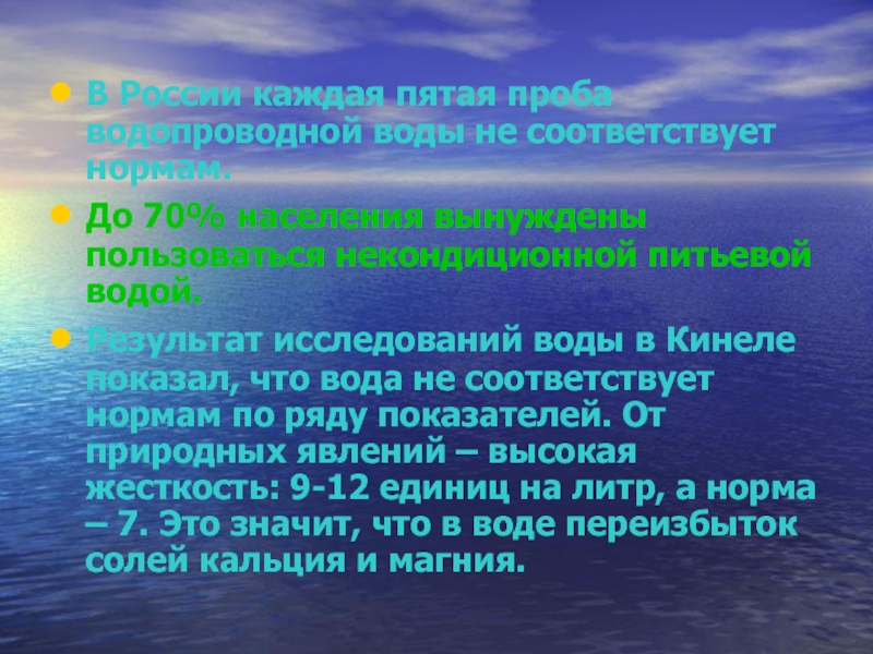 Слайд 31В России каждая пятая проба водопроводной воды не соответствует нормам.