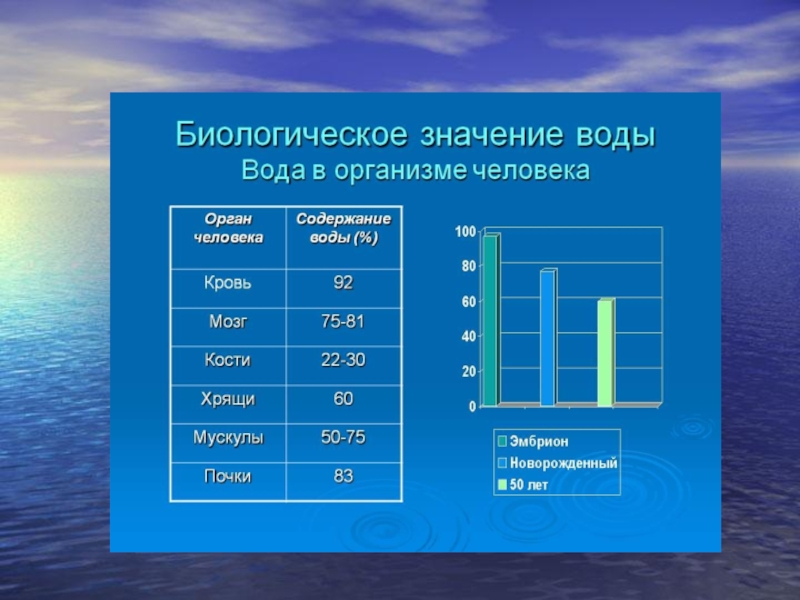 ЗаданиеВ каком органе человека находится больше всего воды?Составьте график распределения воды в организме человека.