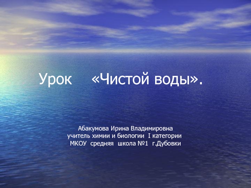 Слайд 1 Урок «Чистой воды».