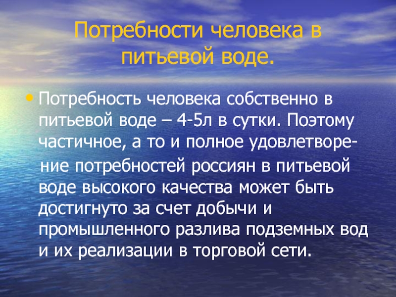 Потребность человека собственно в питьевой воде –