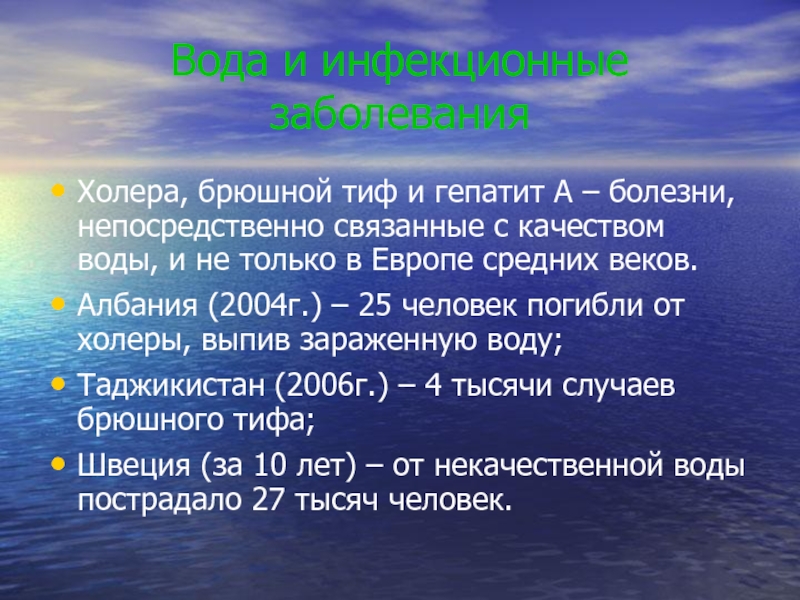 Слайд 14Вода и инфекционные заболевания
