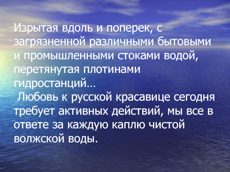 Любовь к русской красавице сегодня требует активных действий, мы все в ответе за каждую каплю чистой волжской воды.