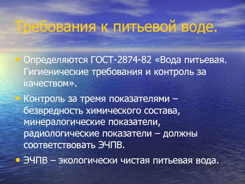 Слайд 18Требования к питьевой воде.