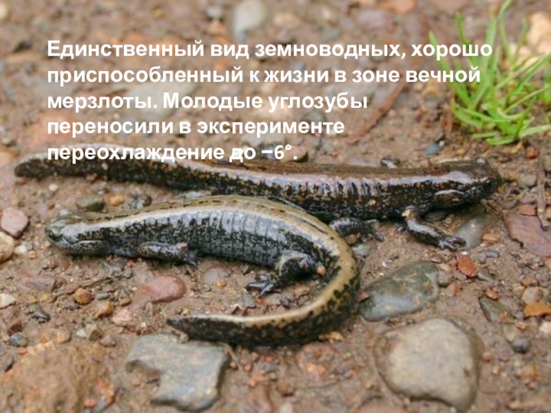 Слайд 59Единственный вид земноводных, хорошо приспособленный к жизни в зоне вечной мерзлоты.